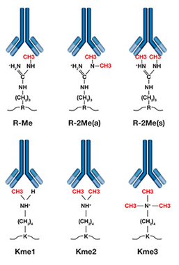 研究表明,常见的甲基化/去甲基化氨基酸通常是赖氨酸(Lys)和精氨酸(Arg)研究发现,组蛋白赖氨酸甲基化修饰具有干细胞保持和分裂等多种生物功能,X染色体失活,转录调整与DNA损伤反应等。,通常影响染色质浓缩,抑制基因表达。组蛋白精氨酸甲基化在基因转录调节中起着重要作用,可影响细胞的各种生理过程,包括DNA修复、信号转导、细胞发育和癌症发生。因此,源肽生物专门开发了甲基装饰多肽技术,对蛋白质翻译后的科学家进行了修饰(PTMS)在研究中给予帮助。