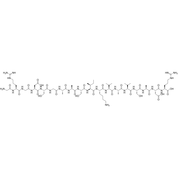 描述:Arg-Gly-Asp-Ser-Pro 是一种多肽,能够由多肽筛选发现。多肽筛选是一种主要通过免疫测定法而集合活性多肽的研究工具。多肽筛选可用于蛋白互作、功能分析,抗原表位筛选,特别是活性分子研究和开发领域。