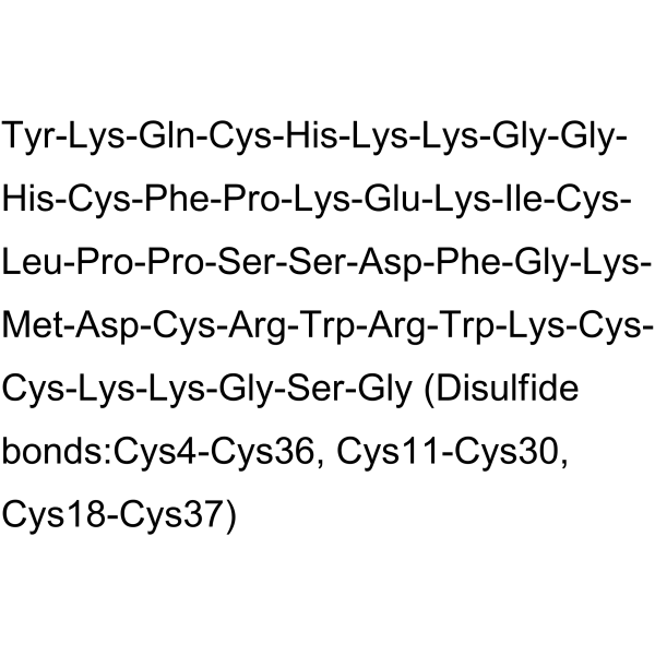 序列:YKQCHKKGGHCFPKEKICLPPSSDFGKMDCRWRWKCCKKGSG (Disulfide bonds:Cys4-Cys36, Cys11-Cys30, Cys18-Cys37)