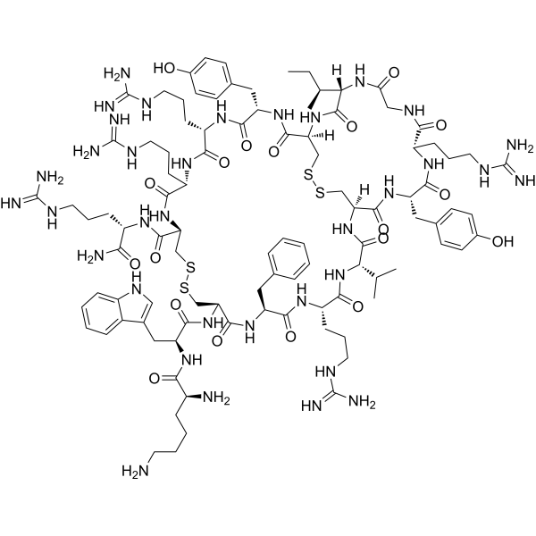 描述:Tachyplesin I 是一种 β-发夹抗菌肽,含有 17 个氨基酸残基。Tachyplesin I 对各种人类肿瘤细胞系表现出细胞毒性特性,主要通过损害外细胞膜的完整性来发挥作用。