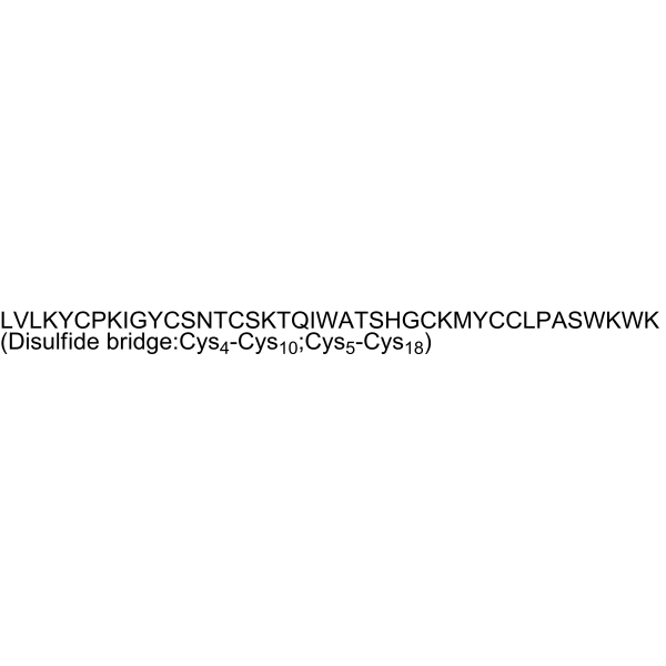 序列:LVLKYCPKIGYCSNTCSKTQIWATSHGCKMYCCLPASWKWK (Disulfide bridge:Cys4-Cys10;Cys5-Cys18)