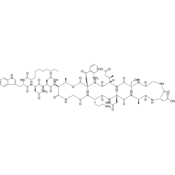 描述:Daptomycin 是一种脂肽类抗生素,具有体外快速杀除革兰氏阳性细菌的活性。