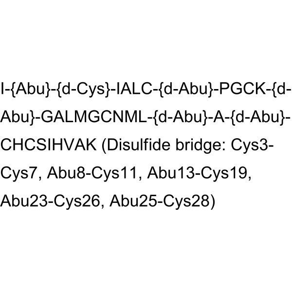 序列:I-{Abu}-{d-Cys}-IALC-{d-Abu}-PGCK-{d-Abu}-GALMGCNML-{d-Abu}-A-{d-Abu}-CHCSIHVAK (Disulfide bridge: Cys3-Cys7, Abu8-Cys11, Abu13-Cys19, Abu23-Cys26, Abu25-Cys28)