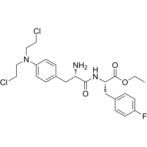 描述:Melflufen (Melphalan flufenamide),Melphalan 的一种二肽前体活性分子,是一种烷基化剂。Melflufen 对多发性骨髓瘤细胞具有抗肿瘤活性,并抑制血管生成。Melflufen 对骨髓瘤细胞 DNA 不可逆损伤及细胞毒作用。