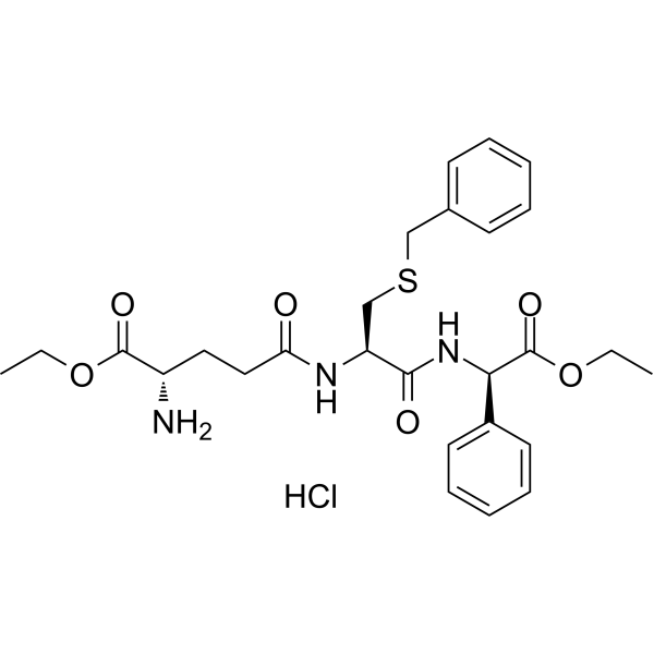描述:Ezatiostat hydrochloride (TER199; TLK199 hydrochloride) 是一种谷胱甘肽的三肽类似物,也是一种选择性的口服活性的谷胱甘肽 S-转移酶 P1-1 (GSTP1) 抑制剂。Ezatiostat hydrochloride 通过抑制 GSTP1 导致 JNK 激活。Ezatiostat hydrochloride 刺激淋巴细胞生成和骨髓祖细胞增殖,可用于骨髓增生异常综合症 (MDS) 的研究。
