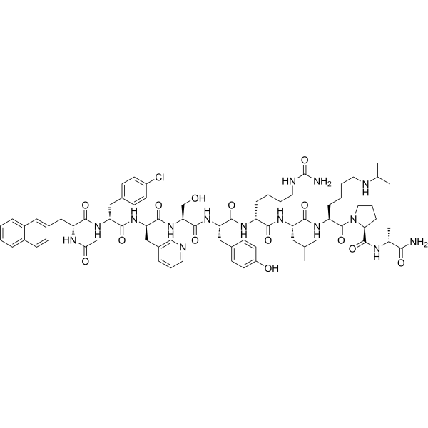 描述:Relamorelin (RM-131),一种生长素类似物,是一种选择性的生长素释放肽/生长激素促分泌素受体 (GHSR) 激动剂,对 GHS-1a 受体的 Ki 值为 0.42 nM。Relamorelin 是一种五肽,具有中枢渗透性。Relamorelin 增加生长激素水平,加速胃排空,具有用于恶病质、胃轻瘫和胃/肠运动障碍研究的潜力。
