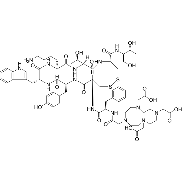 描述:Edotreotide 是一种生长抑素类似物。Edotreotide 与多种放射性核素结合,具有研究和诊断某些类型癌症的潜力。