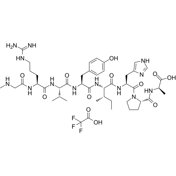 描述:TRV120027 TFA 是血管紧张素 II 受体 1 型 (AT1R) 的 β-arrestin-1 激动剂。TRV120027 TFA 通过阳离子通道亚家族 C3 (TRPC3) 偶联诱导急性儿茶酚胺分泌,促进质膜上 AT1R-β-arrestin-1-TRPC3-PLCγ 形成大分子复合物。TRV120027 TFA 抑制血管紧张素 II 介导的血管收缩并增加心肌细胞的收缩力。TRV120027 TFA有潜力用于急性失代偿性心力衰竭 (ADHF) 的研究。