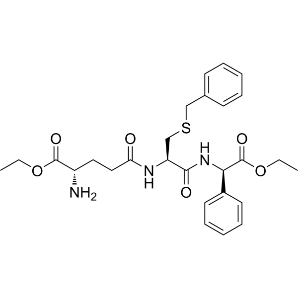 描述:Ezatiostat (TER199 free base; TLK199) 是一种谷胱甘肽的三肽类似物,也是一种选择性的口服活性的谷胱甘肽 S-转移酶 P1-1 (GSTP1) 抑制剂。Ezatiostat 通过抑制 GSTP1 导致 JNK 激活。Ezatiostat 刺激淋巴细胞生成和骨髓祖细胞增殖,可用于骨髓增生异常综合症 (MDS) 的研究。