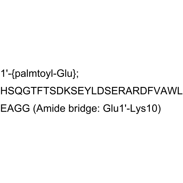 序列:1'-{palmtoyl-Glu}; HSQGTFTSDKSEYLDSERARDFVAWLEAGG (Amide bridge: Glu1'-Lys10)