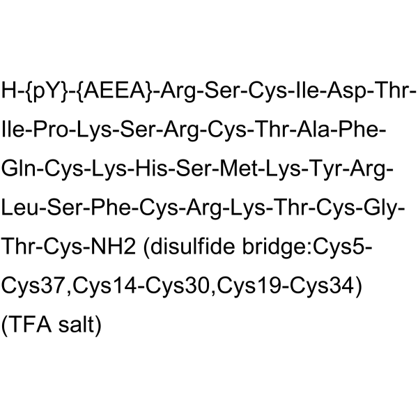 序列:H-{pY}-{AEEA}-RSCIDTIPKSRCTAFQCKHSMKYRLSFCRKTCGTC-NH2 (disulfide bridge:Cys5-Cys37,Cys14-Cys30,Cys19-Cys34)