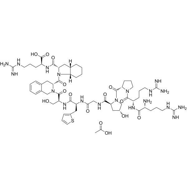 描述:Icatibant acetate (HOE-140 acetate) 是有效的,特异的缓激肽 B2 受体拮抗剂,IC50 和 Ki 值分别为 1.07 nM和 0.798 nM。