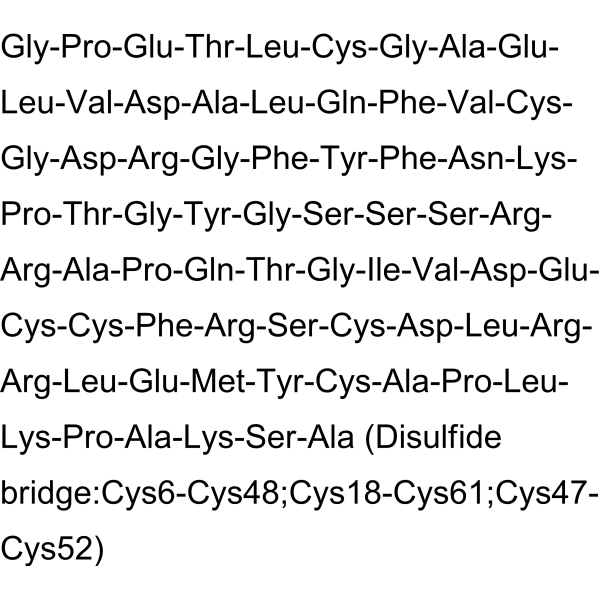 序列:GPETLCGAELVDALQFVCGDRGFYFNKPTGYGSSSRRAPQTGIVDECCFRSCDLRRLEMYCAPLKPAKSA (Disulfide bridge:Cys6-Cys48;Cys18-Cys61;Cys47-Cys52)