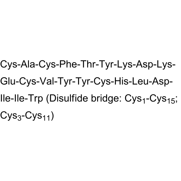 序列:CACFTYKDKECVYYCHLDIIW (Disulfide bridge: Cys1-Cys15; Cys3-Cys11)