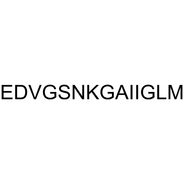 描述:β Amyloid(28-35) human 是一种 β-淀粉样肽 (Abeta),是脂质诱导的淀粉样蛋白核心片段。β Amyloid 寡聚物具有神经毒性,β Amyloid(28-35) human 可与神经元膜相互作用,调节二级结构和神经毒性,引起阿尔茨海默病。β Amyloid(28-35) human 对酸性磷脂 DPH 具有非均向性 (anisotropy) 影响,可使脂质膜双层的内部流动性增强。