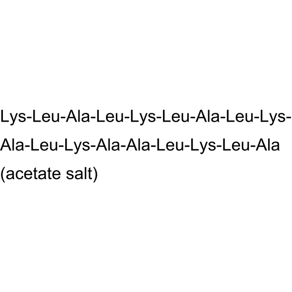描述:KLA seq acetate 是一种具有细胞膜穿透性的 α- 螺旋型两亲模型肽。KLA seq acetate 可缀合肽核酸 (PNA) 而将其递送至哺乳动物细胞。KLA seq acetate 通过共价连接靶向性 mRNA 和荧光素组成递送系统,其再输出较低,对血清影响的抵抗力也较低。