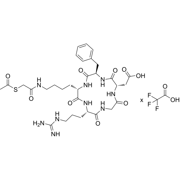 描述:cRGDfK-thioacetyl ester 是一种生物活性多肽分子。cRGDfK 肽对整合素 (integrins) 具有选择性亲和力。cRGDfK 肽可修饰 NIR 荧光探针,用于癌症靶向成像。