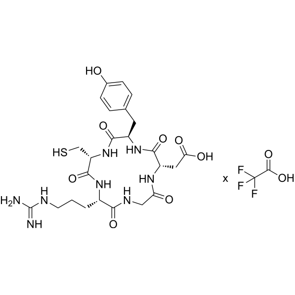 描述:Cyclo(RGDyC) TFA 是一种环状五肽,具有抗血管生成能力。Cyclo(RGDyC) TFA 可结合脂质体递送系统,用于眼部新生血管疾病以及癌症的研究。