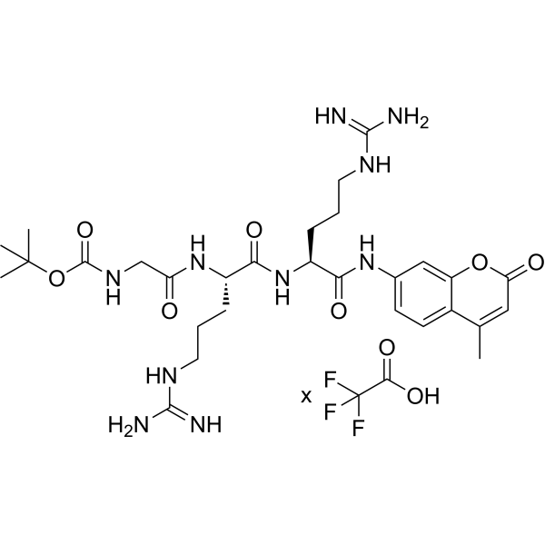 描述:Boc-GRR-AMC (TFA) 是一种三肽底物。Boc-GRR-AMC 可用于荧光西尼罗河病毒 (WNV) 底物,分析 NS2B-NS3 蛋白酶的底物特异性或确定 LdMC 活性的最佳 pH 值。
