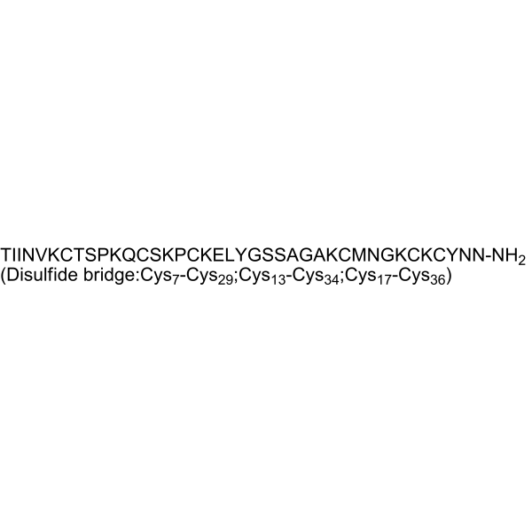 序列:AFCNLRMCQLSCRSLGLLGKCIGDKCECVKH-NH2 (Disulfide bridge: Cys3-Cys21; Cys8-Cys26; Cys12-Cys28)