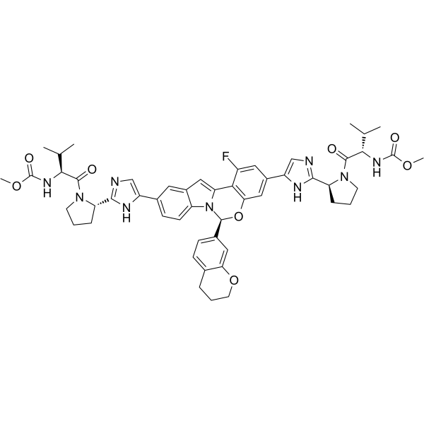 描述:HCV-IN-4 是一种有效、可口服的 HCV NS5A 抑制剂,可抑制 GT1a,GT2b,GT3a,GT1a Y93H 和 GT1a L31V 的增殖,EC90 值分别为 3 pM,0.3 nM,0.01 nM,0.5 nM 和 0.02 nM。