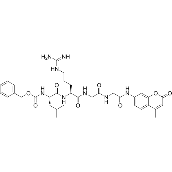 描述:Z-LRGG-AMC (Z-Leu-Arg-Gly-Gly-AMC) 是一种荧光底物,可水解并释放游离的荧光 7-amino-4-methylcoumarin (AMC)。AMC 的检测波长:Ex/Em=360/460?nm。