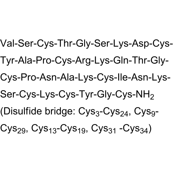 序列:VSCTGSKDCYAPCRKQTGCPNAKCINKSCKCYGC-NH2 (Disulfide bridge: Cys3-Cys24, Cys9-Cys29, Cys13-Cys19, Cys31 -Cys34)
