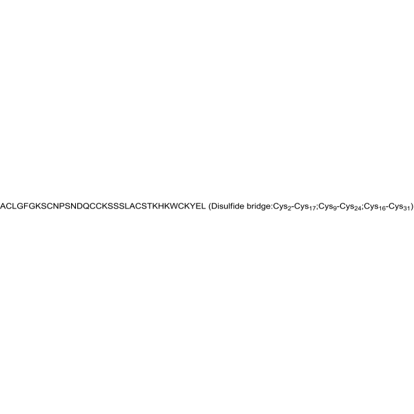 序列:ACLGFGKSCNPSNDQCCKSSSLACSTKHKWCKYEL (Disulfide bridge:Cys2-Cys17;Cys9-Cys24;Cys16-Cys31)