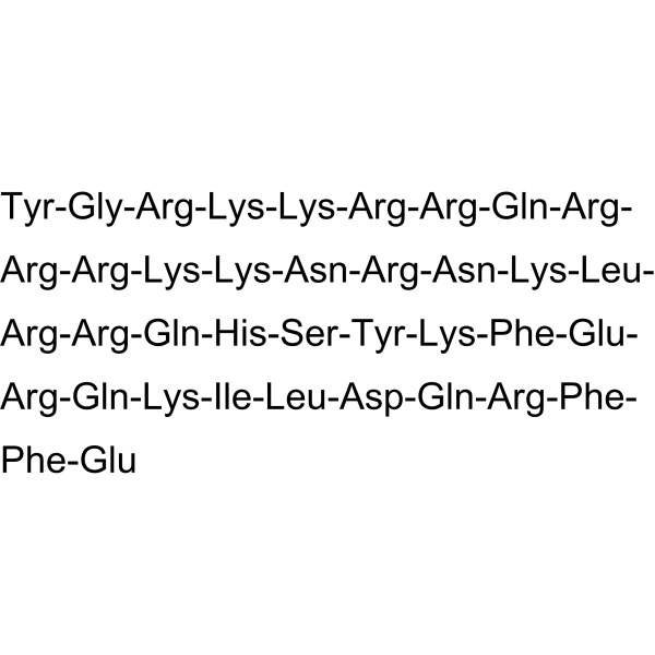 描述:TAT-GluN2BCTM 是一种膜渗透性的 DAPK1 靶向肽。TAT-GluN2BCTM 能将活性 DAPK1 靶向到溶酶体进行降解。TAT-GluN2BCTM 可通过敲低 DAPK1,保护神经元免受氧化应激以及 NMDAR- 介导的兴奋性毒性。TAT-GluN2BCTM 可用于神经保护的研究。
