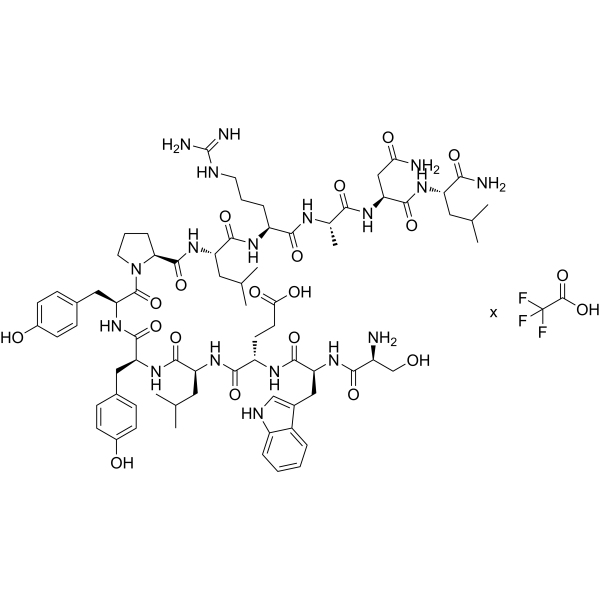 描述:SWELYYPLRANL-NH2 TFA 是一种 E-cadherin 和 N-cadherin 拮抗剂。SWELYYPLRANL-NH2 TFA 抑制噬菌体克隆与 E- 或 N-cad/Fc 嵌合蛋白的结合 (IC50 分别为 0.7 和 0.09 μM)。SWELYYPLRANL-NH2 TFA 抑制细胞聚集。SWELYYPLRANL-NH2 TFA 可用于促进药物通过上皮和内皮渗透性屏障的递送。