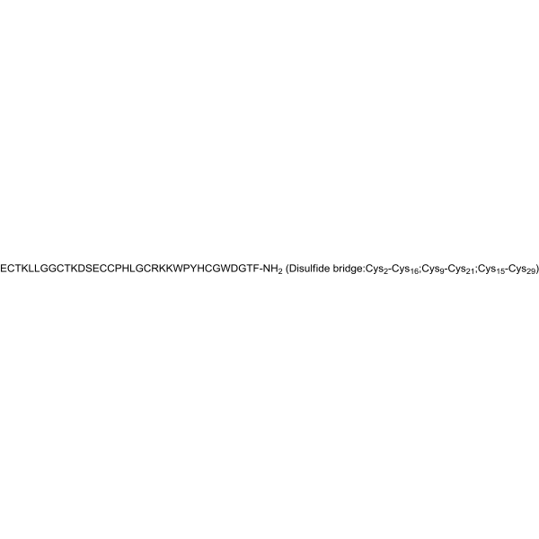 序列:ECTKLLGGCTKDSECCPHLGCRKKWPYHCGWDGTF-NH2 (Disulfide bridge:Cys2-Cys16;Cys9-Cys21;Cys15-Cys29)