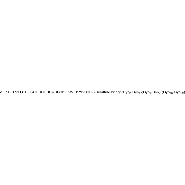 序列:ACKGLFVTCTPGKDECCPNHVCSSKHKWCKYKI-NH2 (Disulfide bridge:Cys2-Cys17;Cys9-Cys22;Cys16-Cys29)