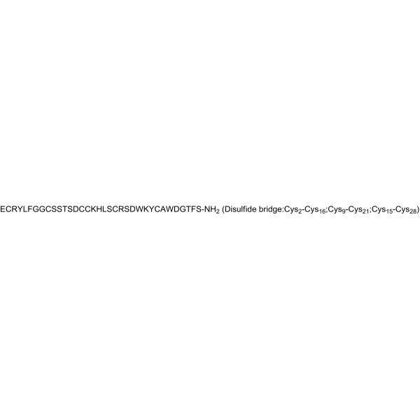 序列:ECRYLFGGCSSTSDCCKHLSCRSDWKYCAWDGTFS-NH2 (Disulfide bridge:Cys2-Cys16;Cys9-Cys21;Cys15-Cys28)