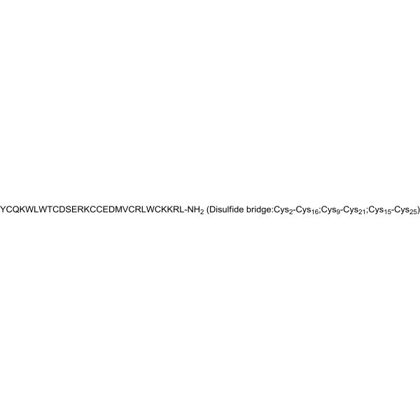 序列:YCQKWLWTCDSERKCCEDMVCRLWCKKRL-NH2 (Disulfide bridge:Cys2-Cys16;Cys9-Cys21;Cys15-Cys25)
