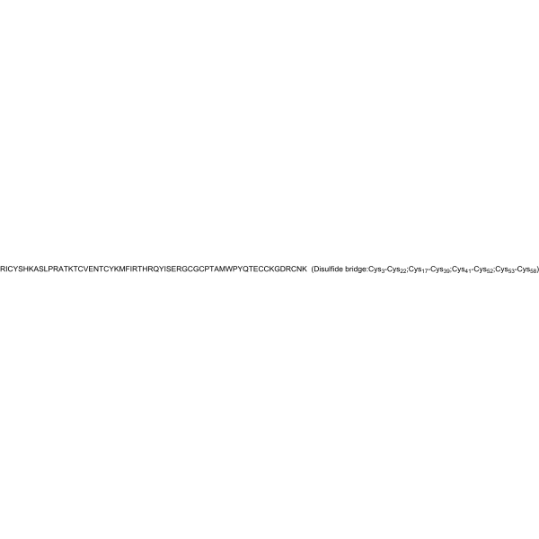 序列:RICYSHKASLPRATKTCVENTCYKMFIRTHRQYISERGCGCPTAMWPYQTECCKGDRCNK (Disulfide bridge:Cys3-Cys22;Cys17-Cys39;Cys41-Cys52;Cys53-Cys58)