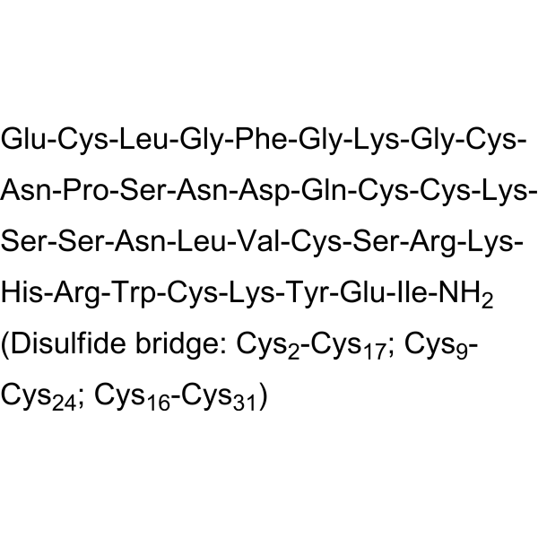 序列:ECLGFGKGCNPSNDQCCKSSNLVCSRKHRWCKYEI-NH2 (Disulfide bridge: Cys2-Cys17; Cys9-Cys24; Cys16-Cys31)