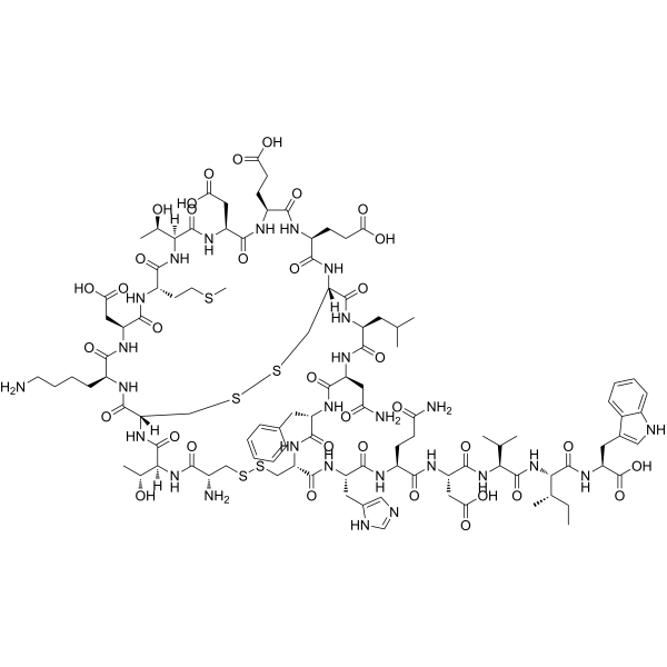 序列:CTCKDMTDEECLNFCHQDVIW (Disulfide bridge: Cys1-Cys15; Cys3-Cys11)