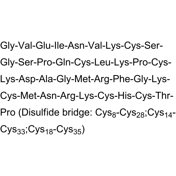 序列:GVEINVKCSGSPQCLKPCKDAGMRFGKCMNRKCHCTP (Disulfide bridge: Cys8-Cys28;Cys14-Cys33;Cys18-Cys35)