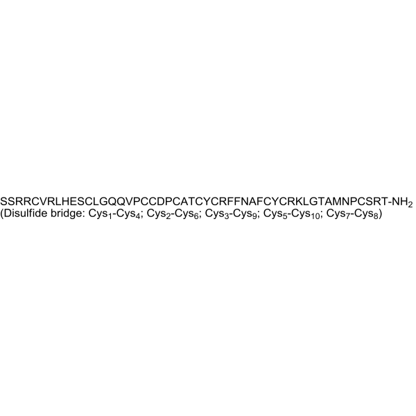 序列:SSRRCVRLHESCLGQQVPCCDPCATCYCRFFNAFCYCRKLGTAMNPCSRT-NH2 (Disulfide bridge: Cys1-Cys4; Cys2-Cys6; Cys3-Cys9; Cys5-Cys10; Cys7-Cys8)
