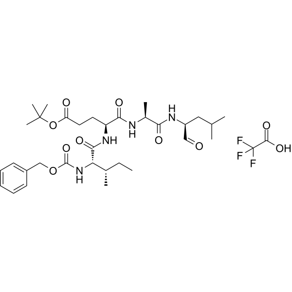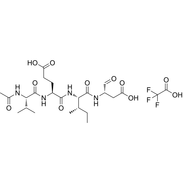 描述:AC-VEID-CHO (TFA) 是一种多肽来源的半胱天冬酶抑制剂,对 Caspase-6、Caspase-3 和 Caspase-7 具有抑制作用,IC50 值分别为 16.2 nM、13.6 nM 和162.1 nM。AC-VEID-CHO (TFA) 可被用于阿尔茨海默病、亨廷顿病等神经退行性疾病的研究。