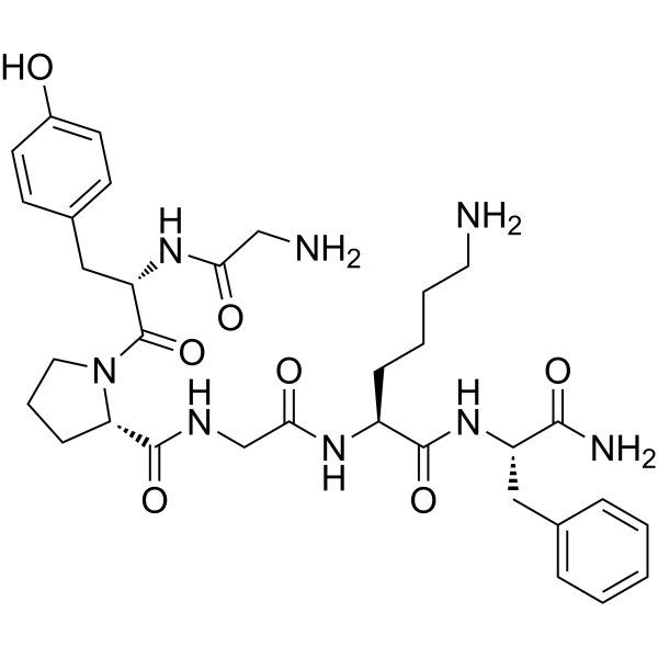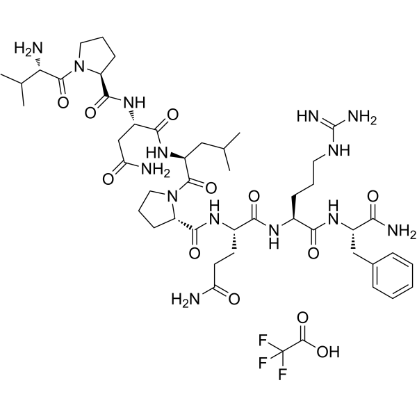 描述:[Lys8, Lys9]-Neurotensin (8-13) (JMV438) 是神经降压素的类似物,通过激活 G 蛋白偶联受体 NTS1 和 NTS2 来发挥作用,其对 hNTS1 和 hNTS2 受体的 Ki 值分别为 0.33 nM 和 0.95 nM,可用于缓解疼痛的研究。