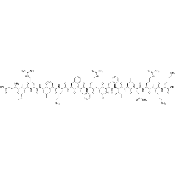 描述:CSP1 是一种有效的、选择性的 ComD1 受体激动剂,IC50 值为 10.3 nM。CSP1 是能力刺激肽 (CSP) 的主要变体,它可以通过调节群体感应 (QS) 来调节肺炎链球菌的遗传转化。CSP1 可以作为抗菌剂。
