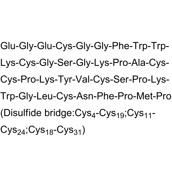序列:EGECGGFWWKCGSGKPACCPKYVCSPKWGLCNFPMP (Disulfide bridge:Cys4-Cys19;Cys11-Cys24;Cys18-Cys31)