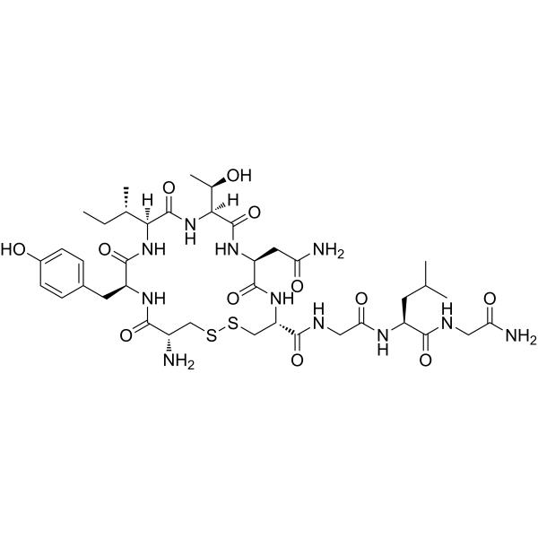 描述:(Thr4,Gly7)-Oxytocin, 一种催产素 (Oxytocin) 类似物,是一种特异性 OT 受体 激动剂。(Thr4,Gly7)-Oxytocin 还可通过激活 TRPV1 通道和抑制 K+ 通道来诱导眼下神经元兴奋。