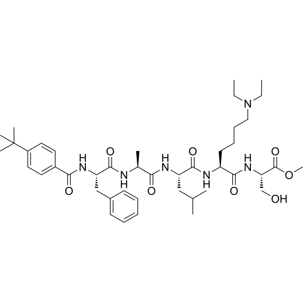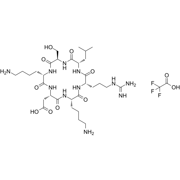 描述:cyclo(RLsKDK) (TFA) (BK-1361 (TFA)) 是一种特异性的金属蛋白酶 ADAM8 抑制剂,IC50 值为 182 nM。cyclo(RLsKDK) (TFA) 在炎性疾病和癌症中有潜在应用。