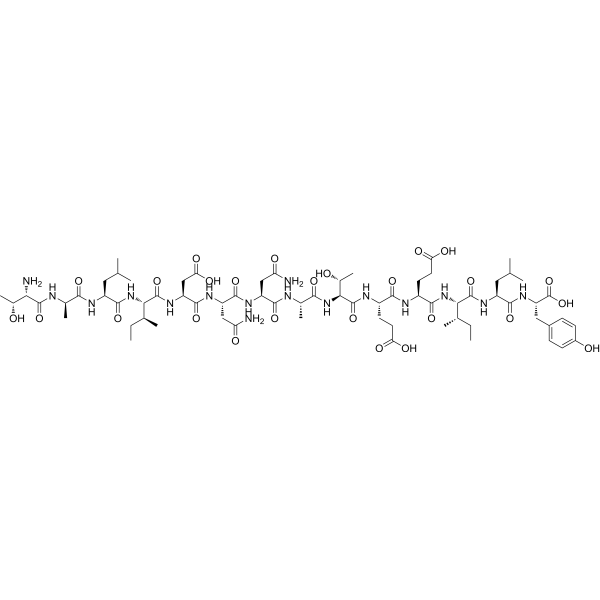 描述:TLQP-21 TFA 是 VGF 衍生的具有内分泌和内分泌特性的肽,是一种强效的 G 蛋白偶联受体补体 3a 受体 1 (C3aR1) 激动剂 (EC50:小鼠 TLQP-21=10.3 μM;人 TLQP-21=68.8 μM)。TLQP-21 TFA 激活 C3aR1,从而诱导细胞内 Ca2+ 的增加。TLQP-21 TFA 可用于研究调节伤害感受和其他相关生理功能。