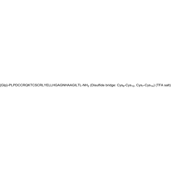 序列:{Glp}-PLPDCCRQKTCSCRLYELLHGAGNHAAGILTL-NH2 (Disulfide bridge: Cys6-Cys12, Cys7-Cys14)