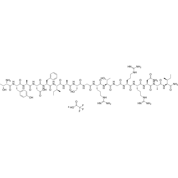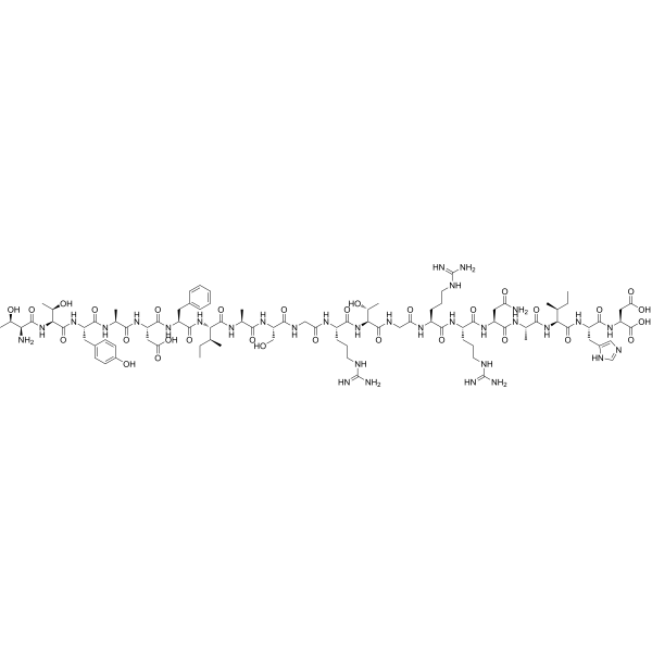 描述:PKI(5-24) 是一种强效、竞争性、合成的 PKA (cAMP 依赖性蛋白激酶) 抑制剂,Ki 为 2.3 nM。PKI(5-24) 对应于天然存在的热稳定蛋白激酶抑制剂中的 5-24 残基。