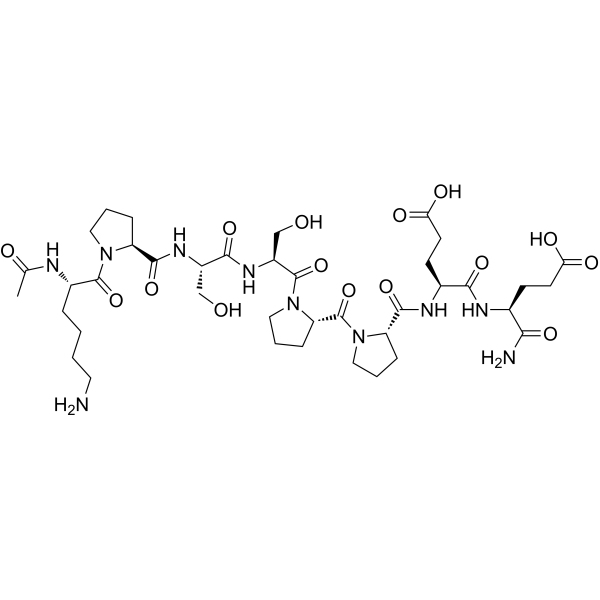 描述:Angstrom6 (A6 Peptide) 是一种来源于单链尿激酶纤溶酶原激活剂 (scuPA) 的8个氨基酸的肽,可干扰 uPA/uPAR 级联反应并消除下游效应。Angstrom6 与 CD44 结合,抑制肿瘤细胞的迁移、侵袭和转移,调节 CD44 介导的细胞信号。