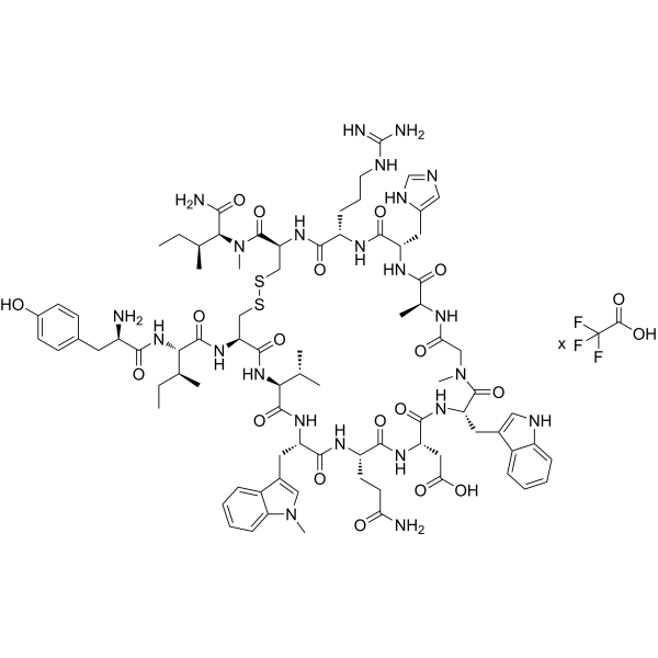 序列:YICV-{Trp(Me)}-QDW-{Sar}-AHRC-{N(Me)Ile}-NH2 (Disulfide bridge:Cys3-Cys13)